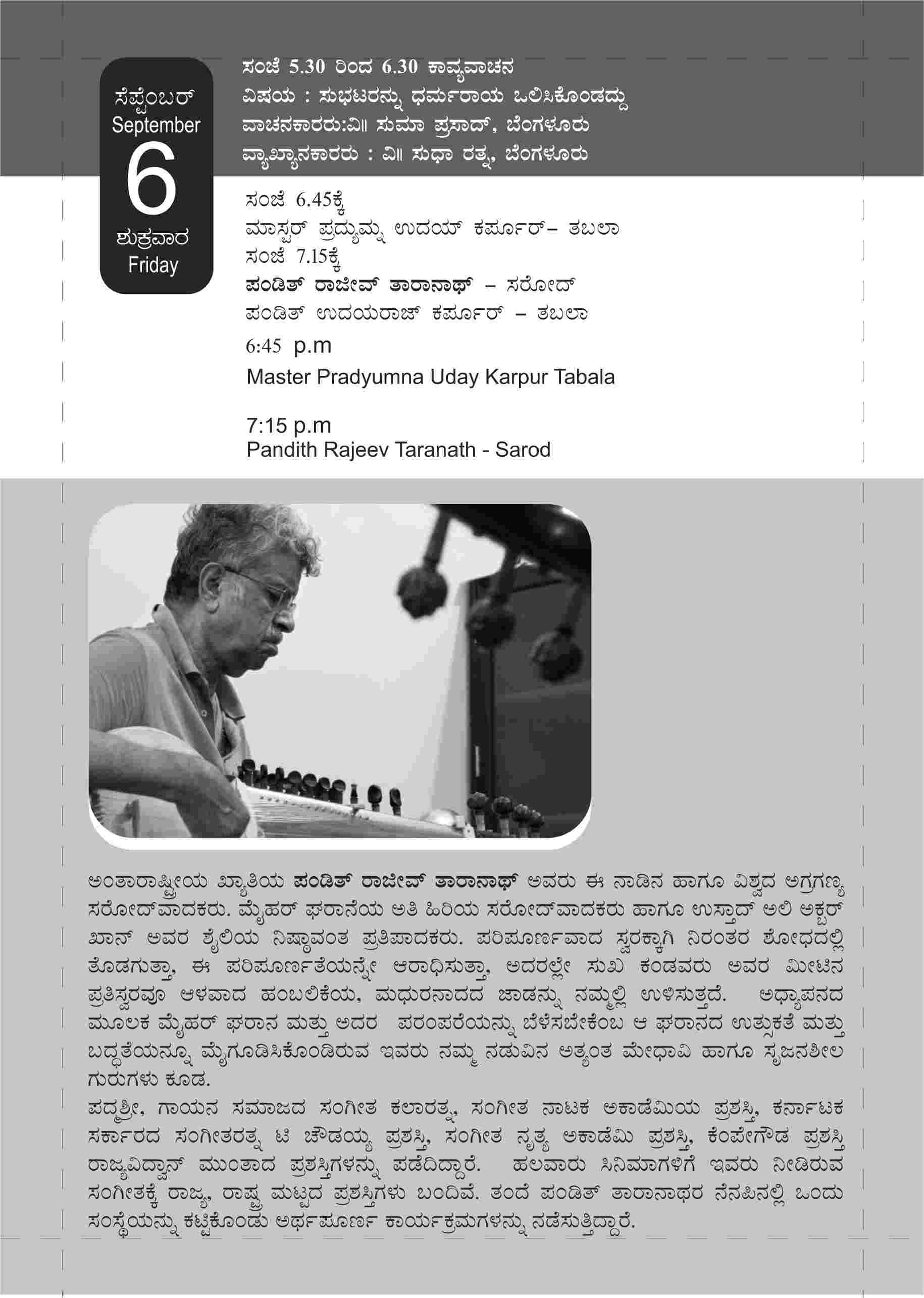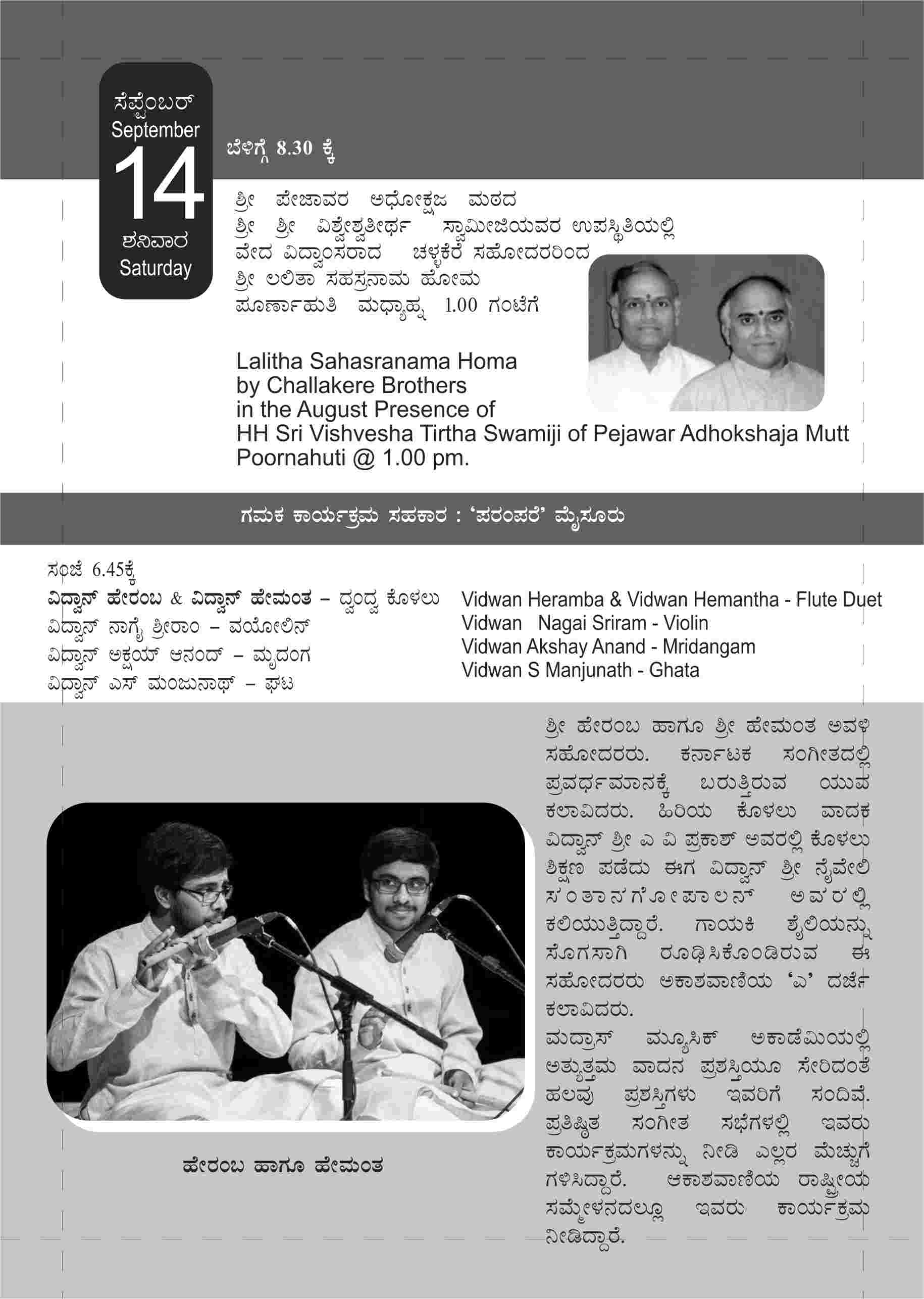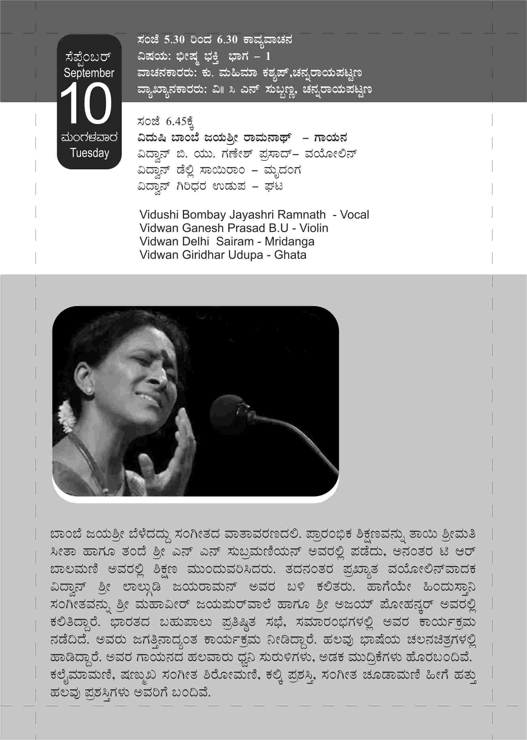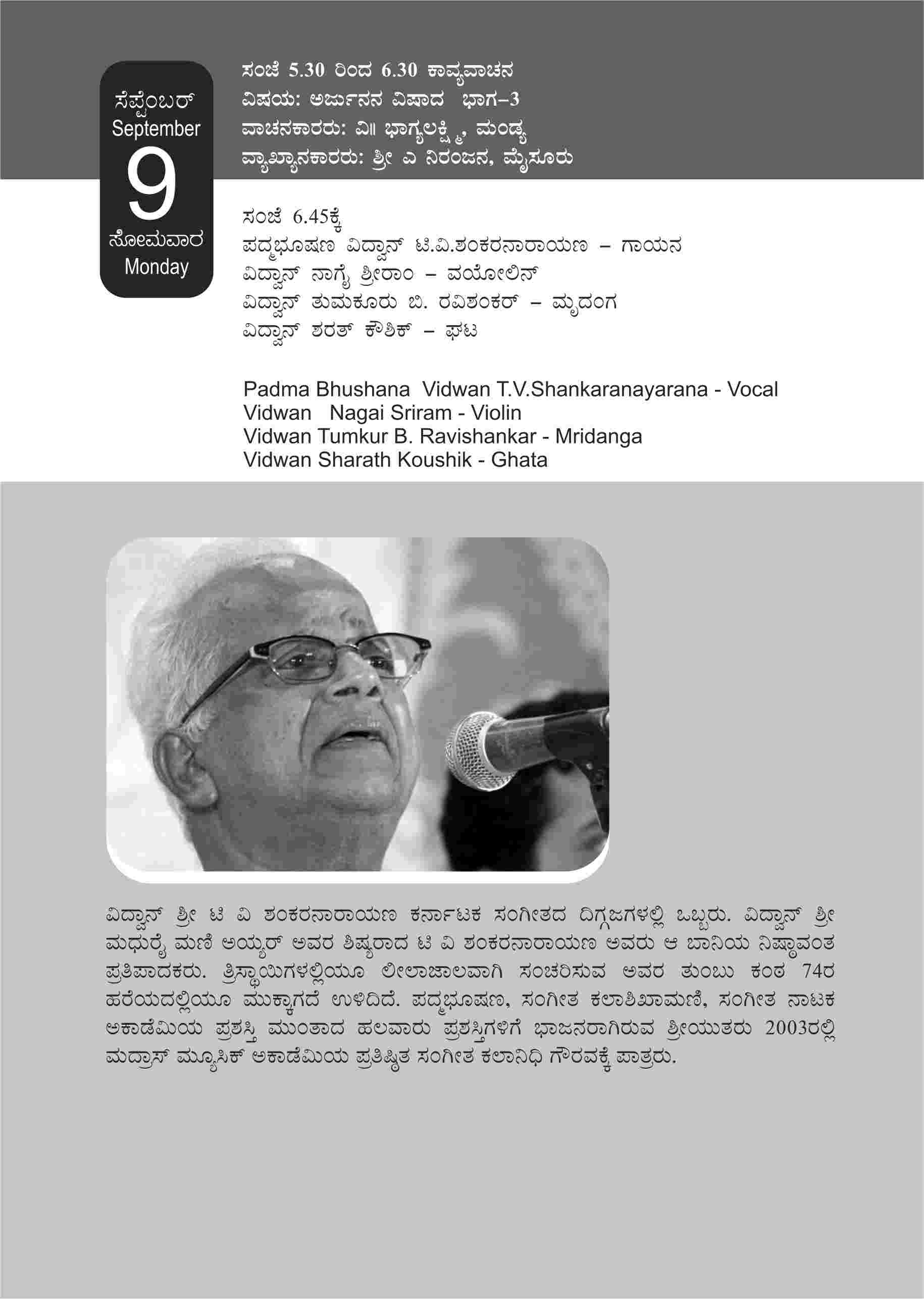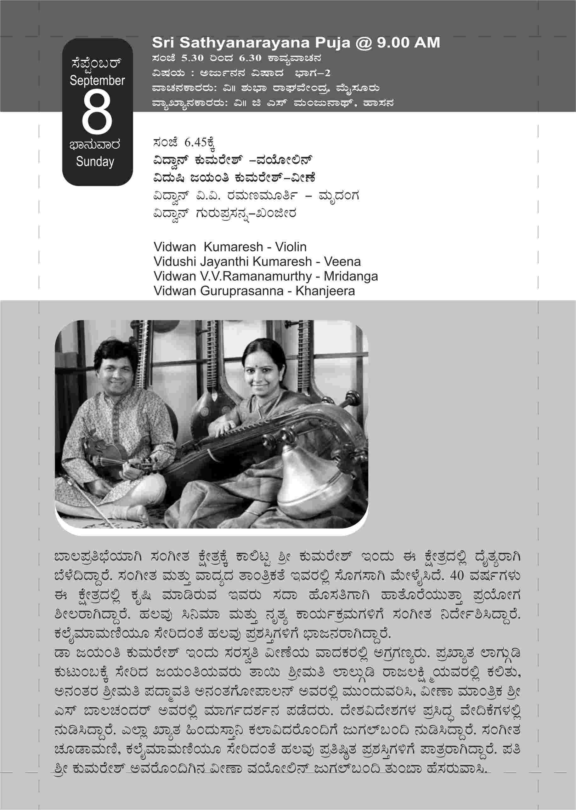 The SPVGMC Trust (R) was established in 1962 to celeberate Ganesha festival in a meaningful way. Over the years, it has acquired the hues of a prestigious Sangeeta Sabha. Main focus of the celeberation is the ten-day long Music festival. Sri Prasanna Vidya Ganapathi Mahotsava Charitable Trust (SPVGMC trust in short) or popularly known as Vontikoppal 8th cross Ganapathi, has come a long way in its musical path. In 2012 it celebrated its golden jubilee. The skeleton of the Ganapathi pendal here is a permanent one occupying a small stretch of 8th cross in Vontikoppal, which is also known as Vani Vilasa Mohalla. The pendal will be constructed every year on this skeleton, into a rain proof auditorium. Ganapathi will be installed in this pendal, in front of which the platform for the artistes will be made.