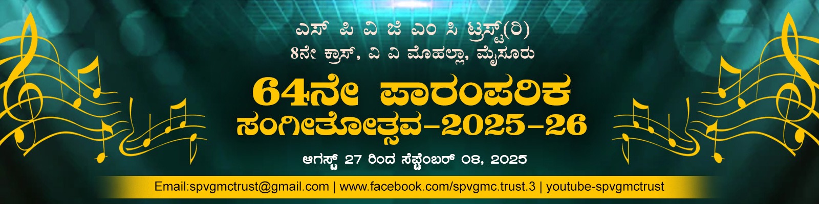 The SPVGMC Trust (R) was established in 1962 to celeberate Ganesha festival in a meaningful way. Over the years, it has acquired the hues of a prestigious Sangeeta Sabha. Main focus of the celeberation is the ten-day long Music festival. Sri Prasanna Vidya Ganapathi Mahotsava Charitable Trust (SPVGMC trust in short) or popularly known as Vontikoppal 8th cross Ganapathi, has come a long way in its musical path. In 2012 it celebrated its golden jubilee. The skeleton of the Ganapathi pendal here is a permanent one occupying a small stretch of 8th cross in Vontikoppal, which is also known as Vani Vilasa Mohalla. The pendal will be constructed every year on this skeleton, into a rain proof auditorium. Ganapathi will be installed in this pendal, in front of which the platform for the artistes will be made.